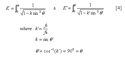 Equation 5 denotes q, a factor developed by the Elliptic Integral.