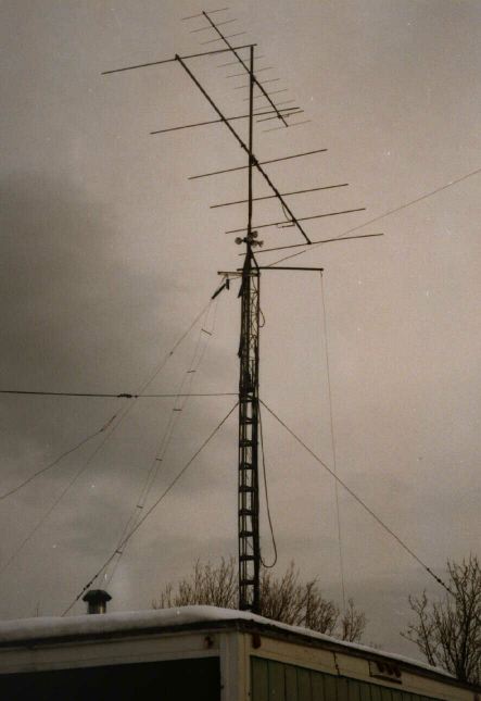 Some of Tim's antennas at the trailer operating location on HLR Mountain.
