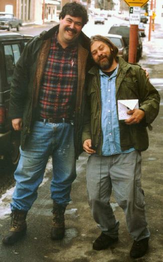 Here Pete WA1SOV & Tim WA1HLR together the Day after Christmas 1997, in Downtown Skowhegan Maine.