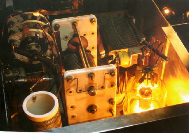 Pete, WA1SOV's 4-125 rig. This transmitter was originally built by Chuck K1KW (formerly WA1EKV) 45 years ago. Pete has modified it with the additional tank components to the right to make it go on 160 through 10 meters. This transmitter is capable of 120 watts carrier out, on all bands presently. The rig is modulated (not shown) by a pair of 811A's originally designed by Tim, WA1HLR. Pete has modified the modulator to operate with a RCA 900/63-501 250 Watt Broadcast Modulation Transformer. The modulator is driven externally with line level audio. The low level audio processing is comprised of a Mackie CRZ-1604VLZ 16 channel 16-4-2 mixing console, and followed by a DBX 166A Compressor, a Stereo 10 band graphic EQ, and a ART FXR Elite II Digital Effects Processor. The microphones are MXL V67Q Dual Capsule, MXL 2003 condensors and AKG D200E Dynamics. The Studio is stereo capable for the stereo AM rig when that is finished. Other transmitters not shown include a homebrew pair of 813's modulated by a pair of 833's, a Valiant II Modulated with a pair of Triode Connected 6DQ5s, a DX-60A modified for Plate Modulation externally, Yeasu FT-900 and FT200M Rice Boxs and the Home Brew pair of 813s Plate Modulated with a Pair of 833s. The Boat anchor receivers at the Hi-Fi listening post are a Hammerlund SP-600/JX17, an EAC R390A, and a TMC GPR-90. More recent additions of to the station include a Flex 5000 and Kenwood TL-922A. The antenna is 160 meter dipole at 60 feet fed with open wire feeders.