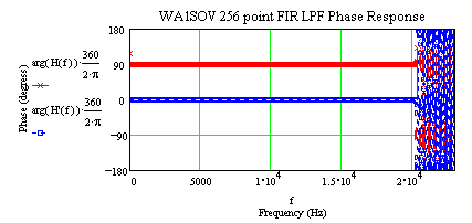 As mentioned in the other articles in this technical section, the way top do this is with a Digital Signal Processor (DSP) and a high order FIR filter. Equation [10] shows the transfer function of such a filter, which I have utilized, with the use of a DSP. The filter design is a digital Hilbert Transformer implementing a Hanning Window on a 256 point FIR Dual Low Pass Filter. The phase response of this filter is shown in Figure 7, and will be the subject of a future article. Stay Tuned!